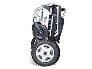All FreedomChair models can be easily folded in just seconds. The compact design, combined with a lightweight aluminium frame, makes them easy to transport by car or plane. Storage space required inside an apartment or cruise ship cabin is minimal.