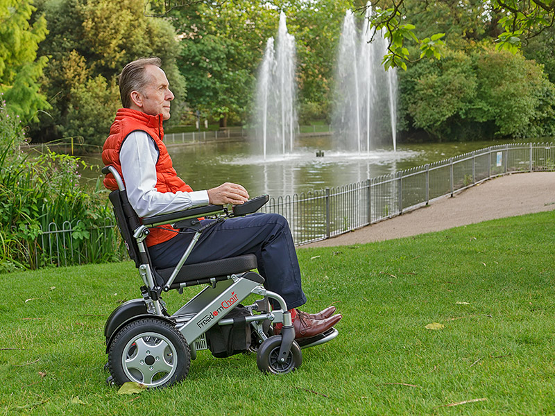 Electromagnetic brakes automatically hold you on a hill as soon as the joystick is released. Motors can be set to freewheel mode allowing the chair to be manually pushed by an attendant if required.