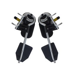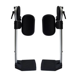 A pair of elevating leg rests for clients who require their leg/s to be elevated when seated in the chair. They can be used in conjunction with, or in replacement of the folding footrest. They are adjustable for the degree of angle and footplate height.
